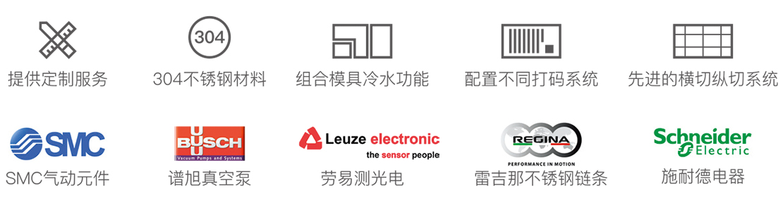 采用日本三菱可編程序控制器控制,彩色觸摸屏,選用三菱變頻走速全部采用日本、歐洲、臺(tái)灣等電器。設(shè)有完善的安全保護(hù)措施